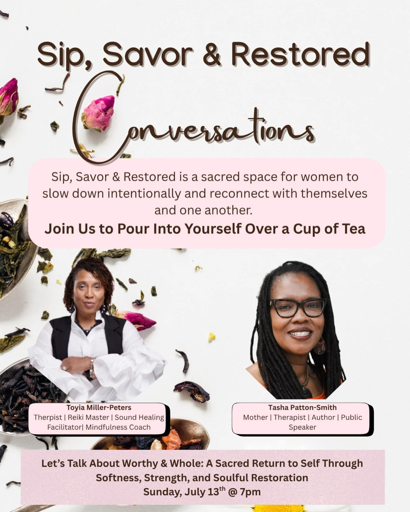 Sip, Savor & Restored Conversation Series Worthy & Whole: Restoring Softness, Honoring Strength, and Embracing the Sacred Return to Self (Click for Replay) Rooted & Restored: Healing the Womb and Reclaiming Joy After Carrying Life and Childhood Trauma (Click for Replay)