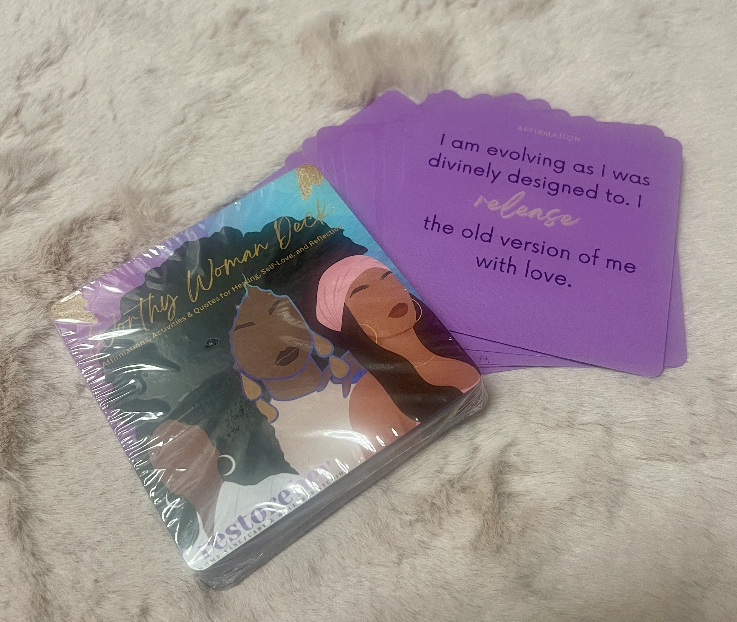 This 52-card collection offers gentle affirmations, soul-soothing practices, reflective prompts, and uplifting quotes—all designed to help you honor your needs, wants, and desires with compassion.
